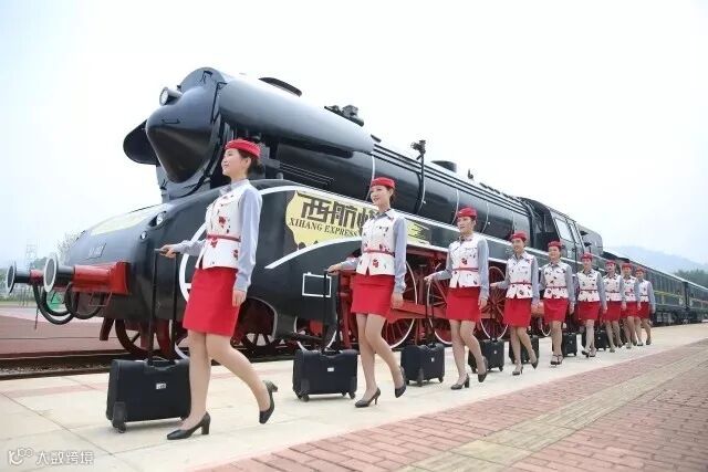 从西航出发,走向世界。学院购买了一辆全长30多米、有3节车厢的德国BR10老蒸汽机车作为高速铁路客运乘务专业的实训室,车厢内部完全参照了现代动车的内部装饰和设备,助力学子们蜕变成为一名专业的“动哥、动妹”。