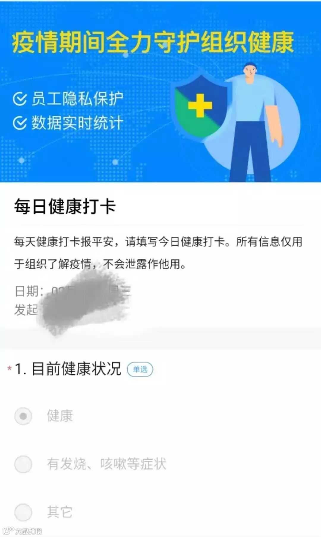 为了能让老师们第一时间清楚你的身体状况,请每天按时在钉钉里进行健康打卡,可别忘了老师们在时刻挂念着你们。