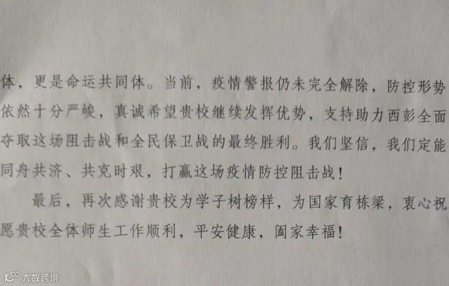 近日,西航收到了一封来自重庆九龙坡西彭镇人民政府的感谢信,信中对我院民航运输专业学子张瑞在当地疫情防控志愿活动中的优秀表现进行了诚挚的认可,深切地赞扬了张瑞作为当代大学生在紧要关头体现出的责任与担当,同时也对西航育人精神表示高度赞许。