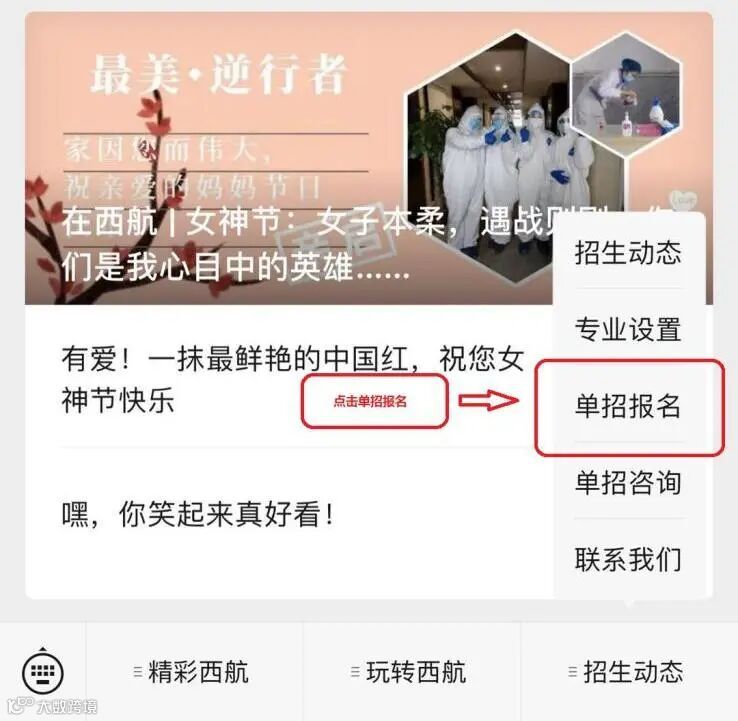 方式三:在四川西南航空职业学院官方微信菜单栏直接点击“单招报名”,进入四川省教育考试院官网进行报名,步骤同方式一。