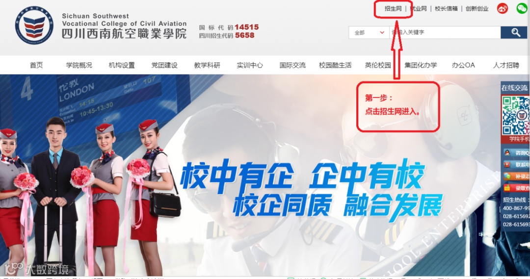 方式二:在四川西南航空职业学院官方网站首页直接点击“2020单招报名”飘窗,进入四川省教育考试院官网进行报名,步骤同方式一。