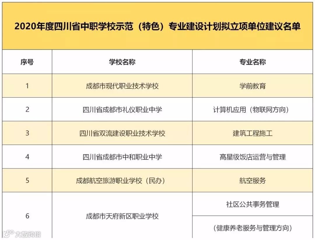 近日,四川省教育厅官网对2020年度四川省中等职业学校示范(特色)专业建设项目拟立项单位进行了公示。泛美教育集团旗下“成都航空旅游职业学校”榜上有名,是成都市上榜名单中唯一一所民办院校。