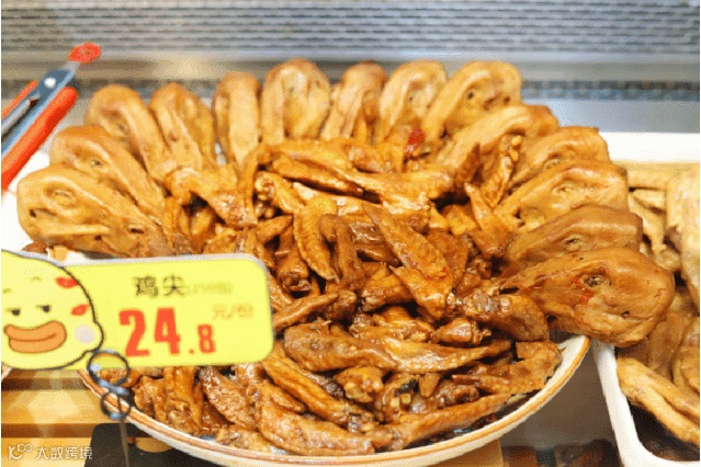 久久丫也算得上是鸭脖届喊的上名号的牌子了(没错,西航就是这么牛,啥牌子都能请过来),鸭脖、鸭掌、鸡脚都有,还有荤素串,追剧必备零嘴。