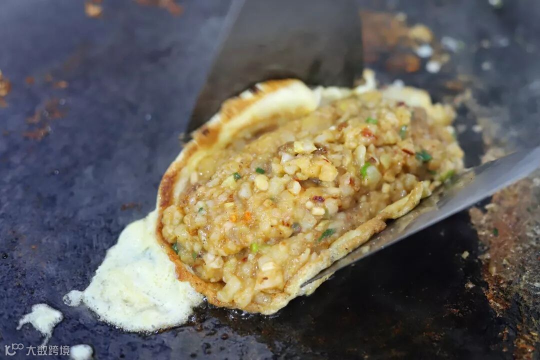 要说街边小吃几大霸主,必须有煎饼果子啊,强迫症必备美食,随手一画就是个标准的圆,放上薄脆和生菜,一口下去嘎嘣脆,食量小的一个管饱!