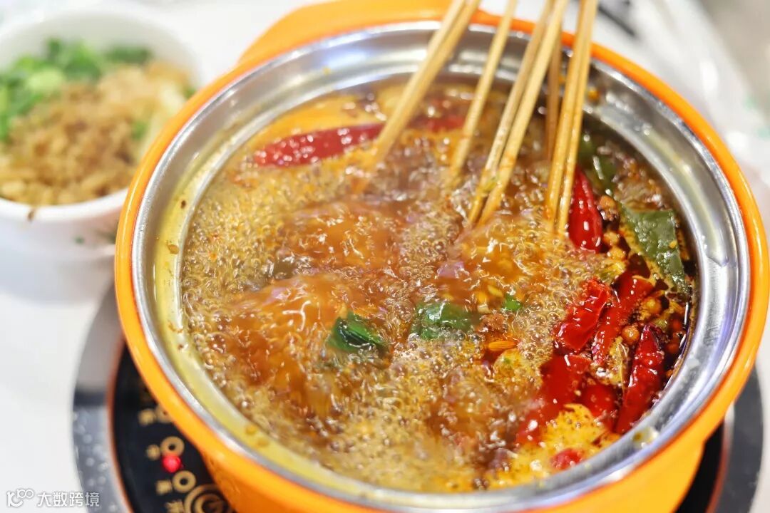 在四川必须吃啥子,那肯定是火锅,水街就有一家旋转小火锅,在左边往里面走,一人一口小锅,干净又卫生,吃多少拿多少,可以说是非常贴心了。