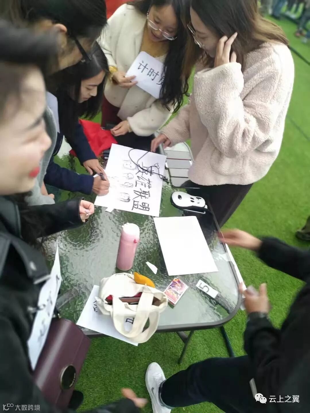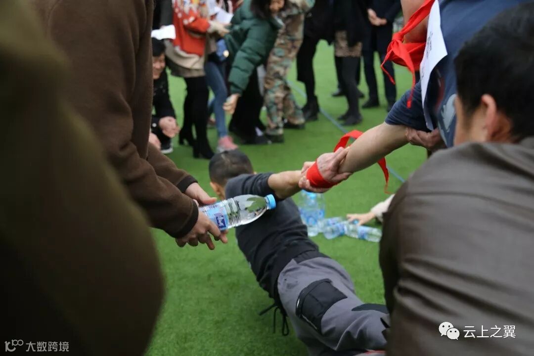 在规定的距离内,学员队的所有人,通过合作拿到雷区的矿泉水。所有人不能涉及雷区,每个学员队只能是一个人负责取水,另外一个人负责拿着篮子接水。取水时,只能用手拿。在规定时间内,取到一定数量的水,则得到相应的分数。