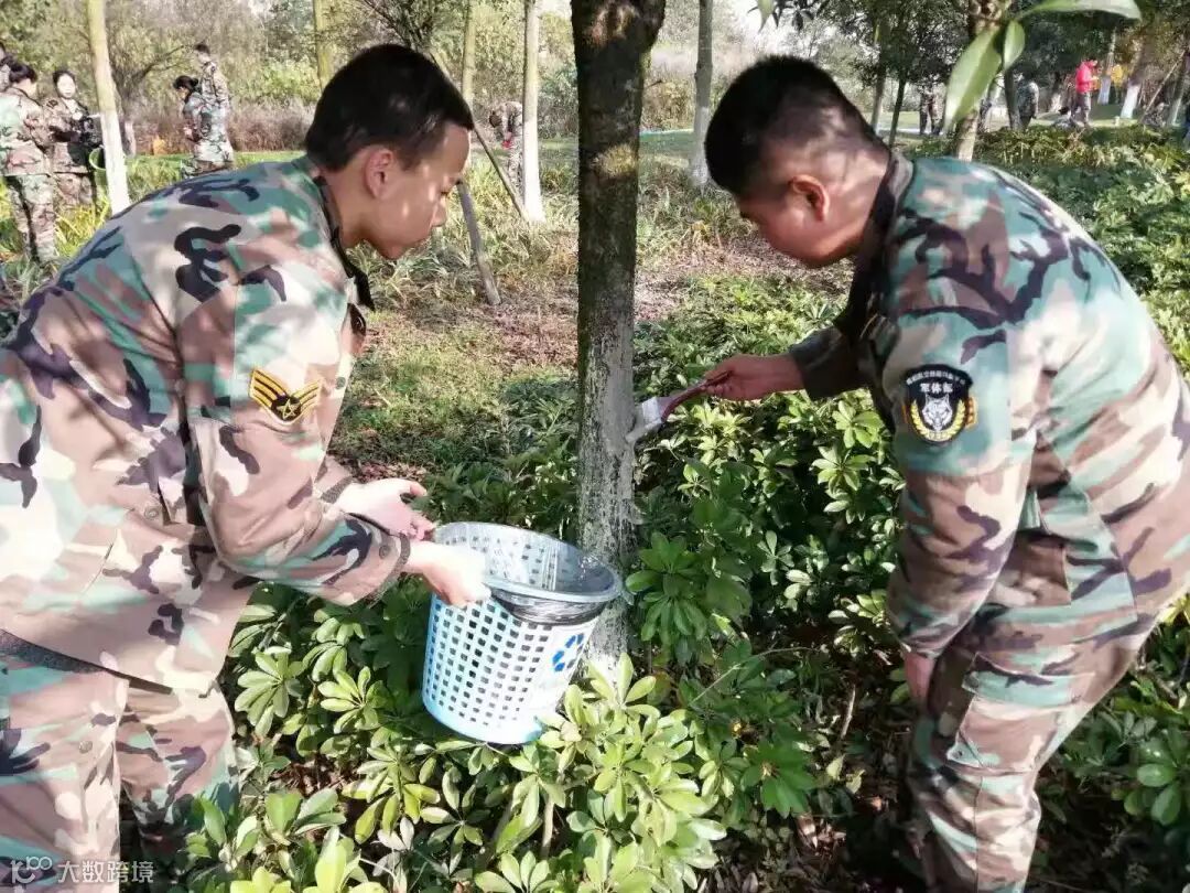 空港学子们排队有序地走出校园,步伐整齐划一,朝着清水河公园进发。护树行动正式开始,同学们手提石灰水,为树木刷上厚厚的石灰水,令害虫“望而止步”,也使沉闷的冬季显得不那么单调枯燥,树木外皮裹上层白浆,粉刷与粗糙树皮接触,为树植添上防护的“外衣”,每位同学参与其中,在阳光恰到好之际弯下腰,为环保、为爱树而行动。