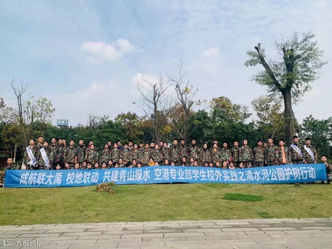 空港学子共同合影留念,至此,空港专业部校外实践之清水河护树行动完美落下帷幕。