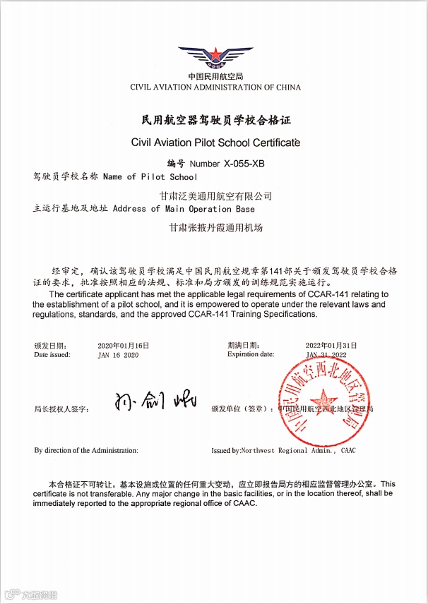 同时,泛美通航集团具备中国民航局批准的CCAR-61部、CCAR-91部、CCAR-141部、空中游览、夜航、私商照培训等资质13个,实现PA-28、AT-3机型首飞,取得PA-28复装授权等,为学生考取飞行执照(私、商照)提供了强有力的保障。