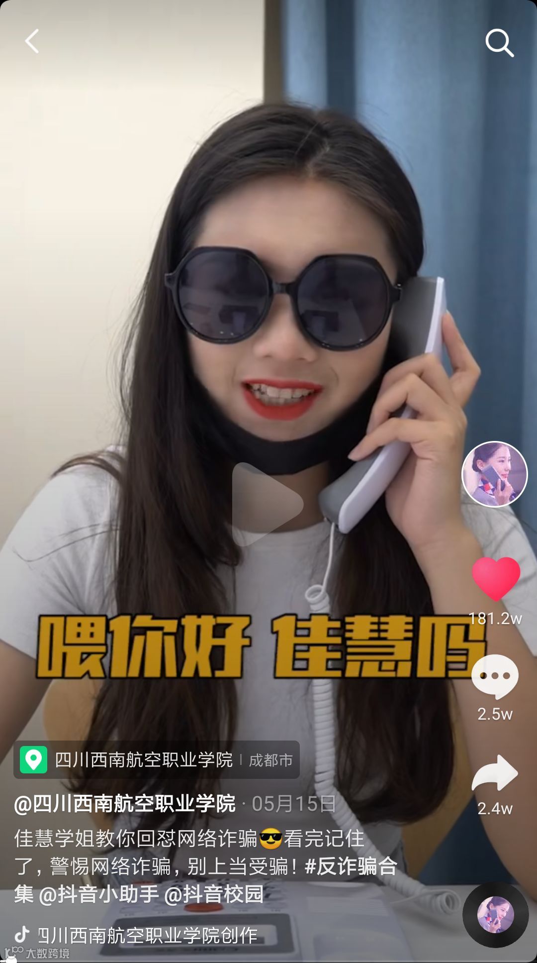 作为短视频代名词的抖音从建立以来就深受广大群众的喜爱,在新媒体的浪潮下,四川西南航空职业学院于2018年5月入驻抖音,短短一年时间,就展现了在短视频领域的实力。