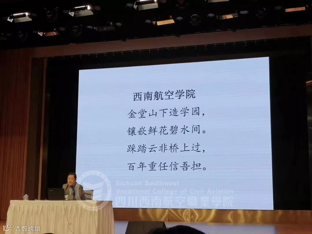讲座最后,李军理事长朗诵了其创作的题为“西南航空学院”的七言诗,并对“金堂山下造学园,镶嵌鲜花碧水间。踩踏云非桥上过,百年重任信吾担。”的诗句内容进行剖析,表达了对西航民航人才培养的认可和鼓励,讲座在热烈掌声中落下帷幕。