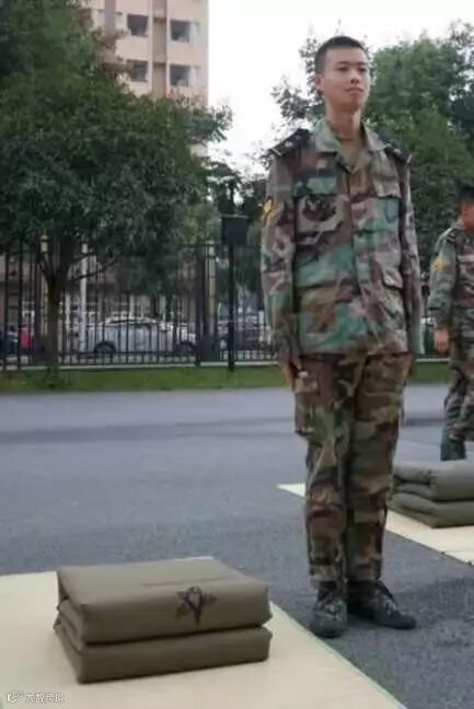 新来的一床军被首先要压,用手掌或者小臂反复来压被子,把被子压平,这是叠好军被的基础。压的时候一定要用力,有些人的被子总是叠不好,很大的原因是因为这一基础环节没做好。