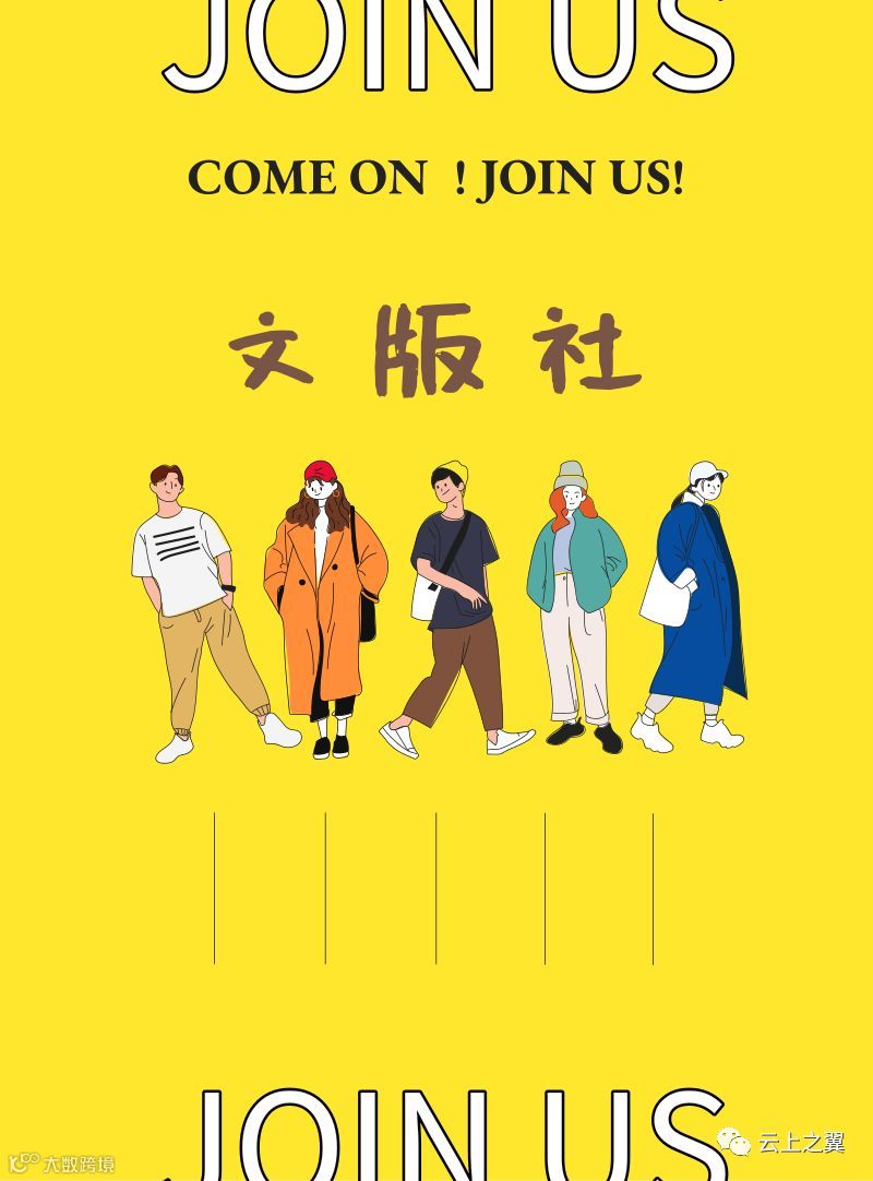 社团名取名为“文版社”等备成立时间2019年。社团主要以写创新故事,诗歌,自己的成长经历和恋爱故事都支持投稿撰写。以亲往经历,大胆想象。随处的采访为笔,去创作,以原创发表。有时还会写写小歌曲,但不学究,只是因为自己的热爱,如果你喜欢写作,如果你想提高自己的写作水平,如果你想起好小说和诗歌之类的。如果你在展板上想看到自己的荣誉,只要你够积极,够耐心。对文学有一-份执着。福利多多,欢迎加入我们文学爱好者的天堂吧。
