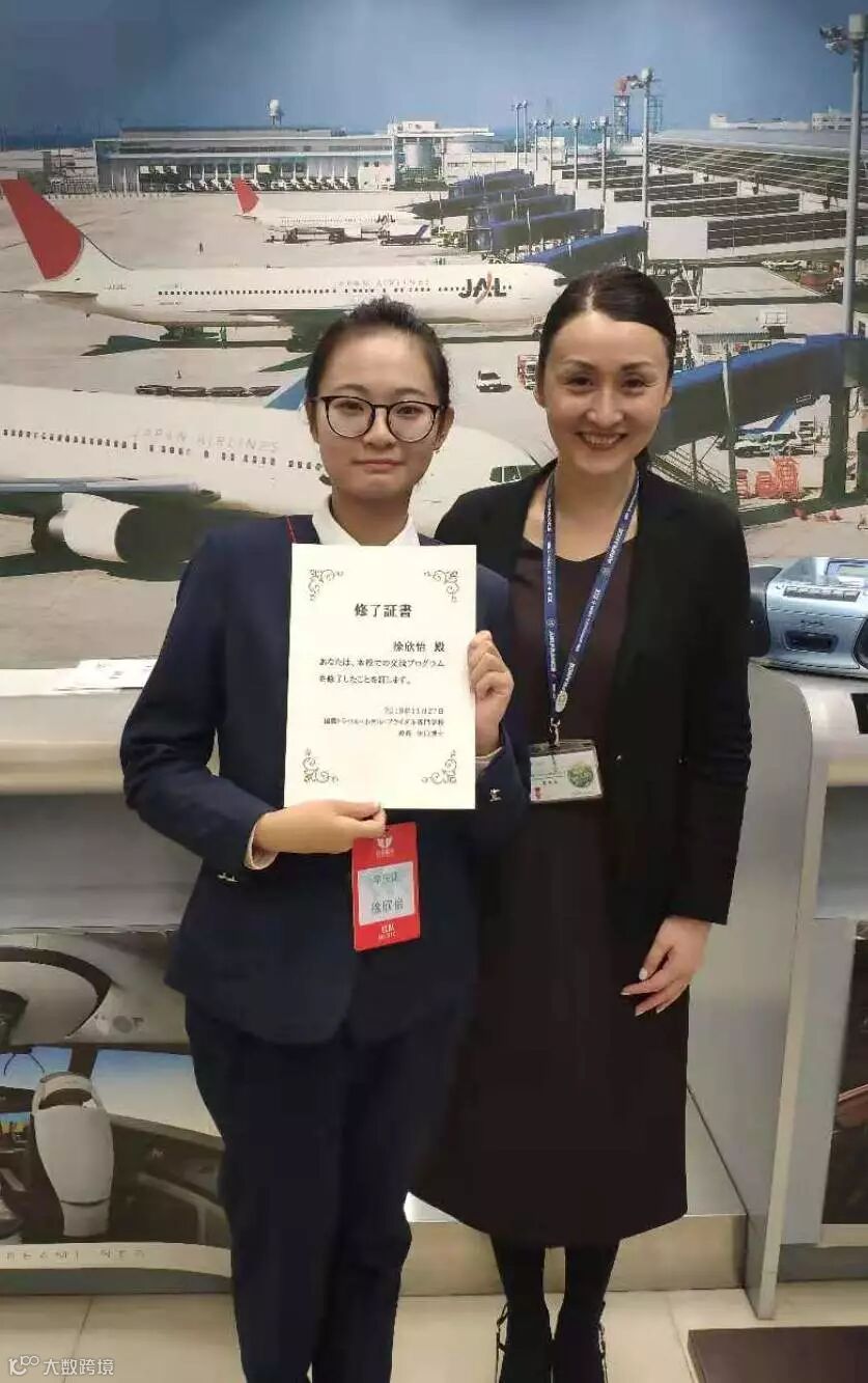 今天在日本航校学习,体会到了很多。原以为会因为语言不通,交流起来难免会有障碍,但没有想到遇到了一位会中文的小姐姐,她很热心地教我坐姿。在这次的学习中,让我又一次感受到了微笑的重要性,微笑可以说是世界通用语言了。很高兴和日本的小姐姐拍了合影,这会是我一段非常难忘的记忆。