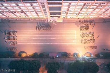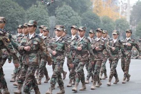 接下来进行的是行进间队列动作,同学们响亮的口号声和脚步声冲淡了军事会操的紧张严肃氛围,展现出综合男儿的勃发英姿。