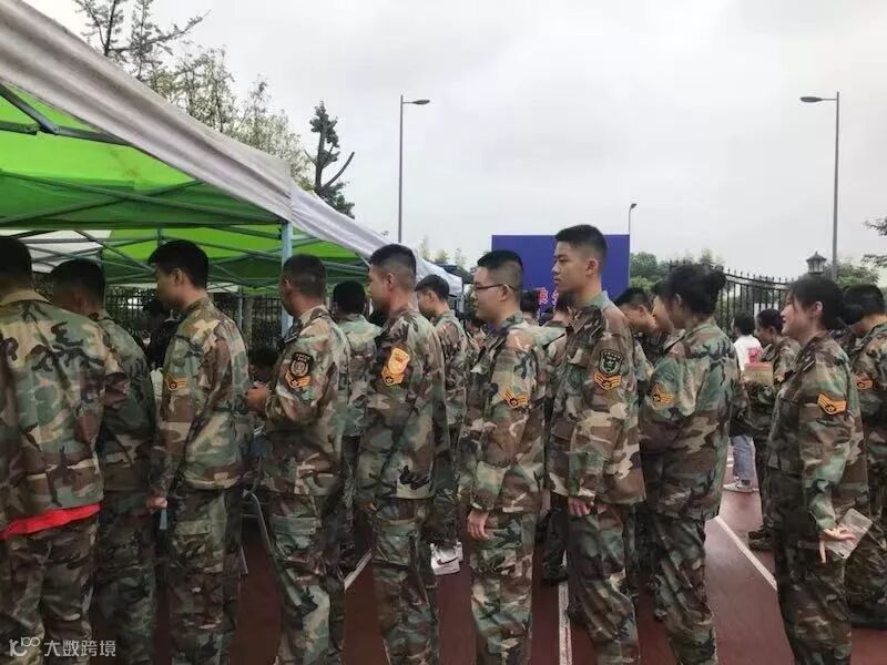 同学们排队等待报到
