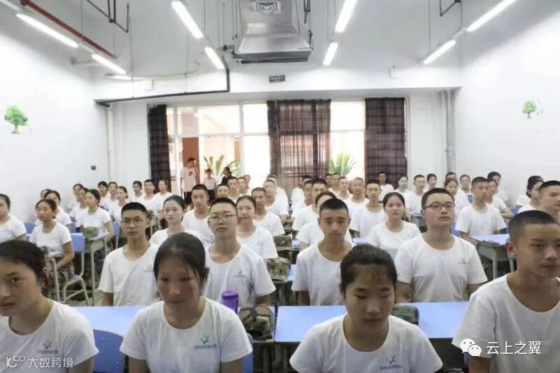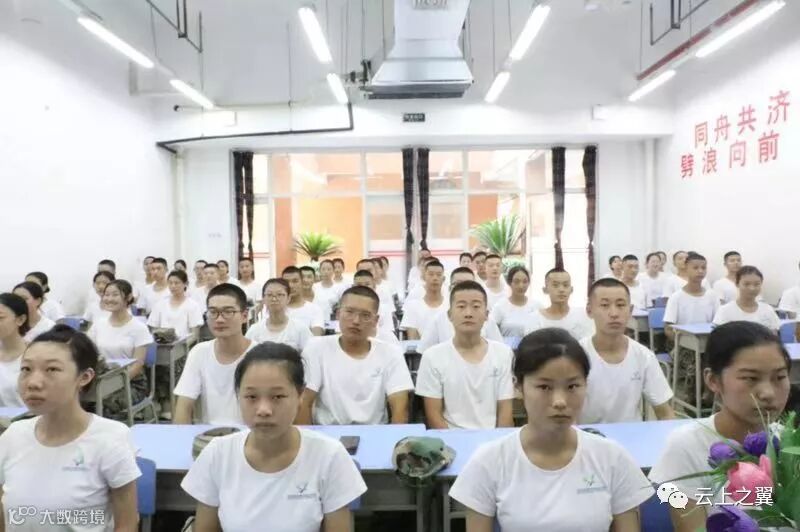 下午因天气炎热,19级新同学们进到教室进行室内学习。同学们端坐在座位上,参谋长对同学们进行入学教育。不仅如此,同学们还在教官的带领下一起学习了军歌。