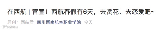 此外,西航春假将与清明节假期错开,方便师生出行,鼓励学生走出校园,深入社会一线,脚踏实地考察社会,将生命教育、规律教育、情感教育、社会实践真正落到实处。