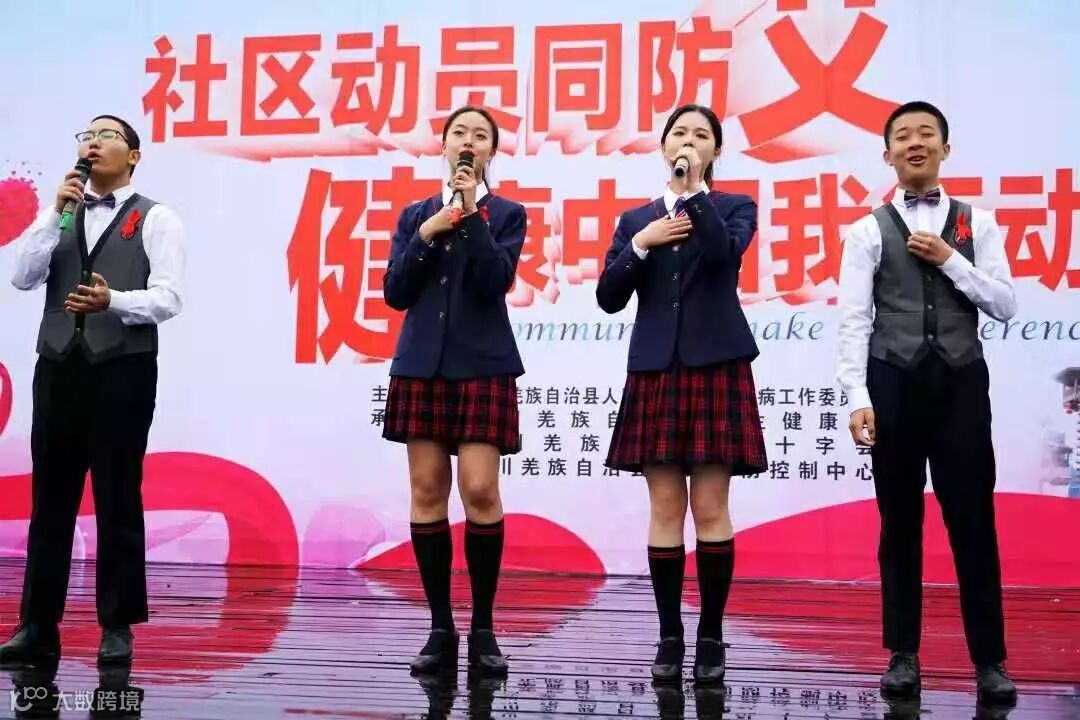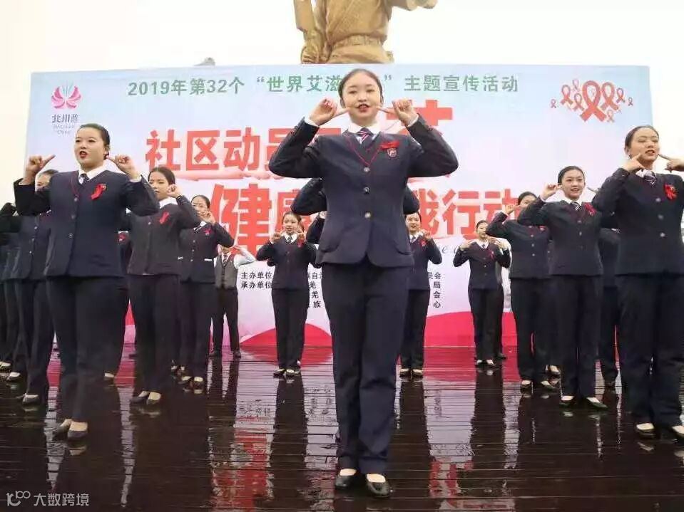 11月29日,绵阳泛美飞行职业技术学校的学子们参加了北川羌族自治县的“社区动员同防艾,健康中国我行动”的活动,寒风冷雨中,绵飞学子们都保持着绅士淑女的气度,也带来了精彩纷呈的表演。
