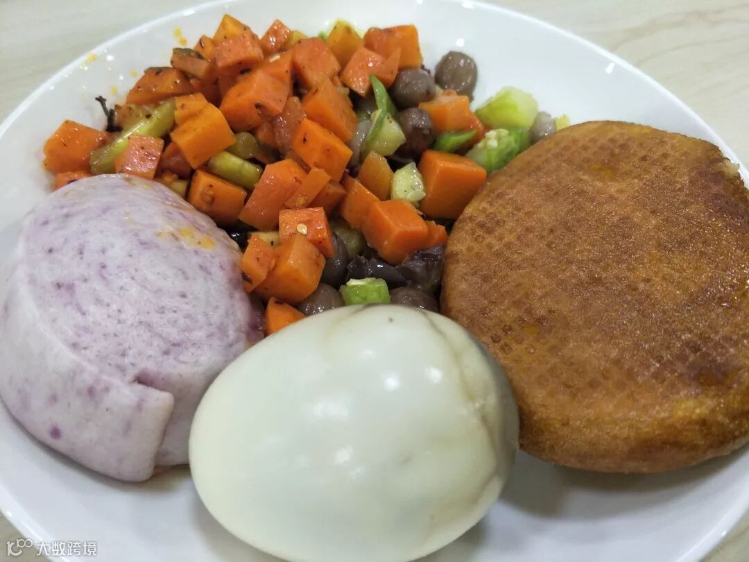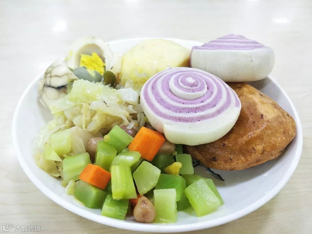 每天早晨四点半,西航食堂的灯光就陆续亮起,叔叔阿姨就开始为同学们准备一天的食物。松软的紫薯卷里裹着满满的红豆,紫薯的糯甜夹杂着红豆泥的甜香,一口咬下去,嘴里混着红豆粒和面卷一口一口慢慢嚼,再喝一口花生粥……简直不能再美味了。
