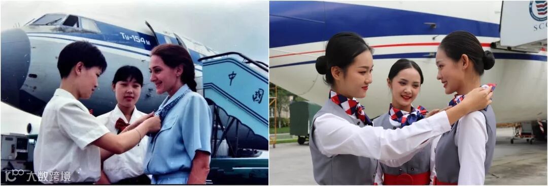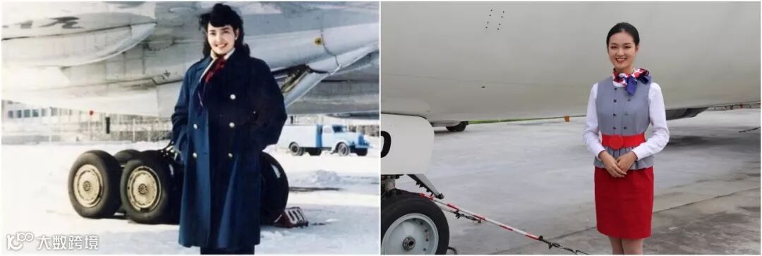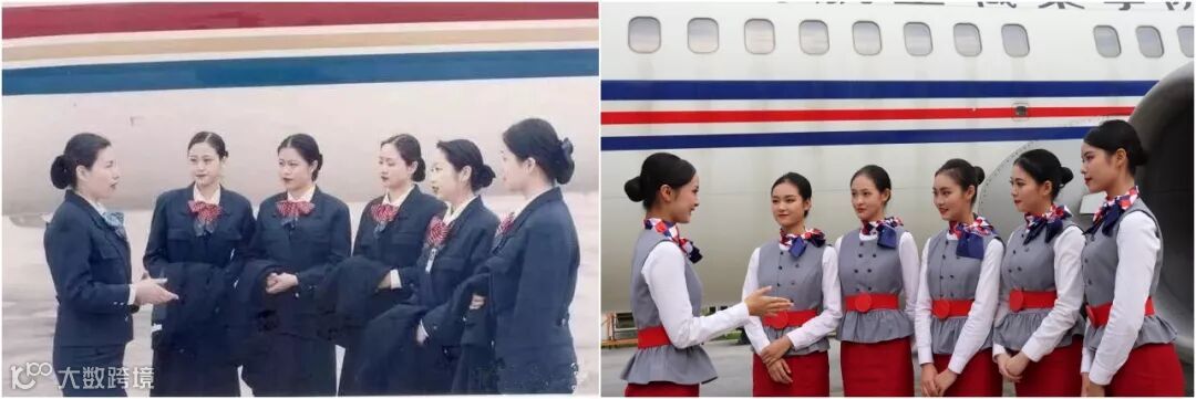 向空姐前辈致敬,西航空中乘务专业的同学们模仿拍摄了从新中国成立后的第一批空姐到90年代空姐的照片。