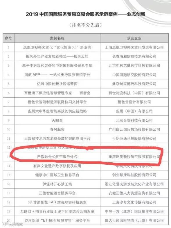 聚焦:近日,由商务部和北京市政府举办的2019年中国国际服务贸易交易会上,重庆泛美新程《产教融合式航空服务外包》荣获2019中国国际服务贸易交易会“中国服务”业态创新服务示范案例。