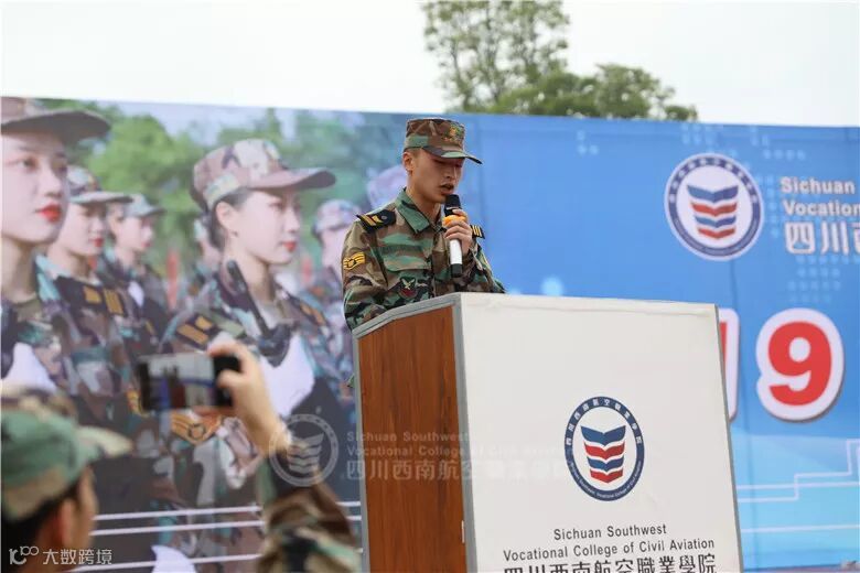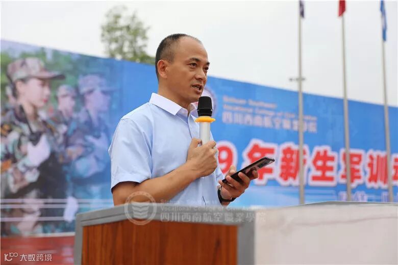 四川西南航空职业学院副院长苟平德先生代表全体师生员工,向2019级新生表示欢迎和祝贺。“欢迎你们来到美丽的西航,开始新的学习和生活,接受新的历练和挑战,获取新的知识和技能,丰富和成就你们的精彩人生。”同时,他也与新生们分享了为什么要进行军训?军训要完成的任务、如何完成军训任务?等内容,并希望同学们能够整理好心情、调整好状态,以饱满的精神状态投入到军训中,圆满完成军训任务,不断征服自我、洗礼自我、超越自我、完善自我,充分展现我们西航学子的崭新风貌。