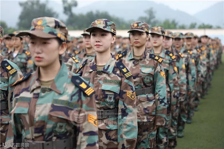 ⬆ 凌云风采:五专学院的实习教官们,他们展示了整理仪容仪表的规范性动作,动作迅速整齐而有力,体现标准的军人风范。