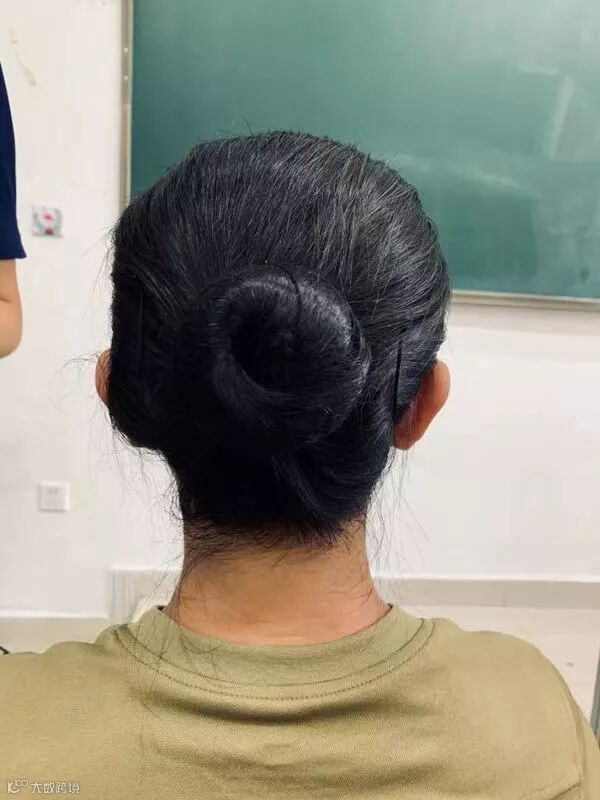长发:用发网盘成“花苞头”。