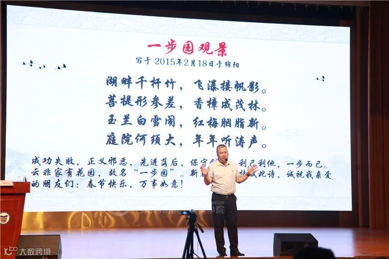 云非先生从他写的第一首诗《而立有感》开始说起,按照时间顺序详细为大家分享了:教师要因材施教,如春风般面对学生的《春风》、表达四川人民地震后坚韧不屈、积极向上的《咏梅》、写给新生儿子、祝福同学们的《勉儿诗》、气象宏大的《夜梦》、意境开阔的《一步园观景》、感恩母亲的《忆母亲》……让大家了解了诗词背后的故事,感受了用诗歌体验人生、感悟生活、表达情感的魅力。