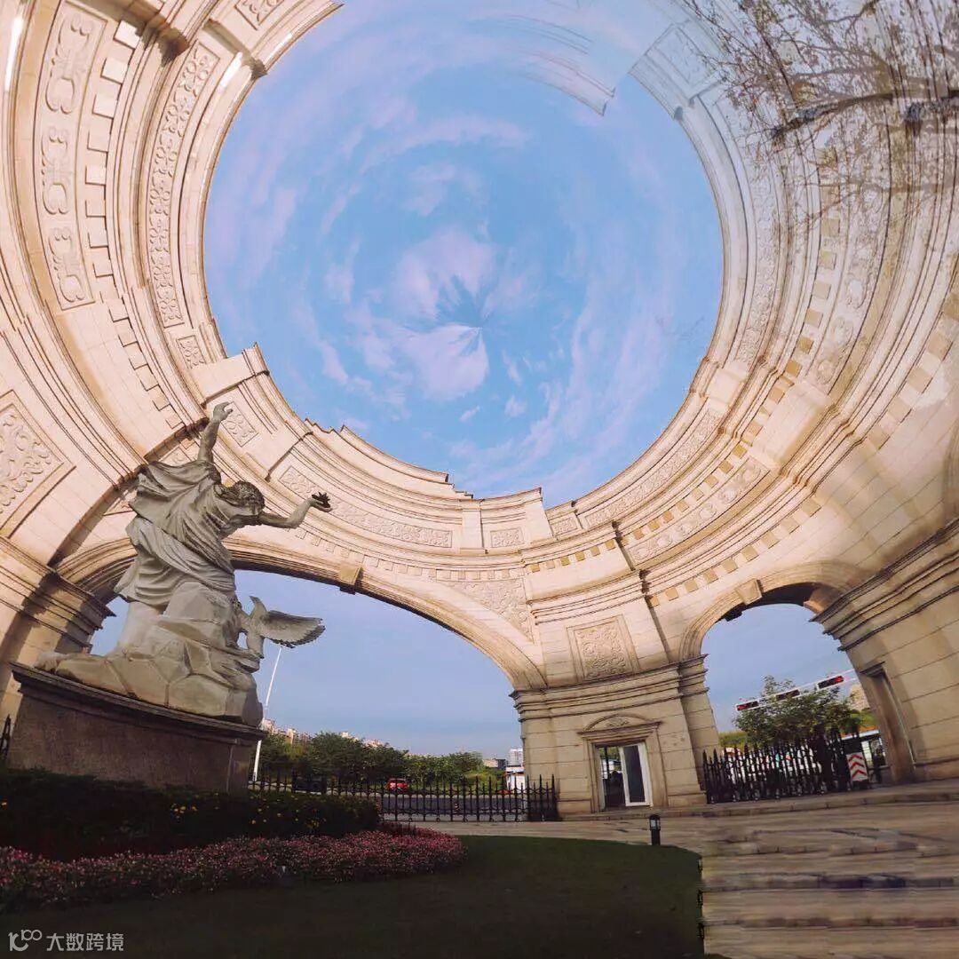 360°旋转以后,凯旋门内包含了整个蓝天,抬头望去,那繁华的幻景,似乎有梦想的影子。