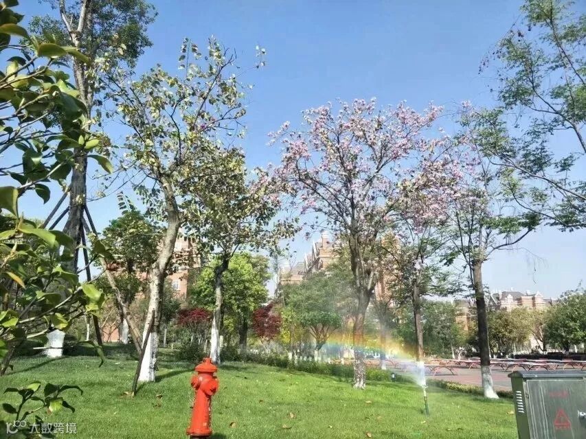 晨光的照耀之下西航校园格外艳丽