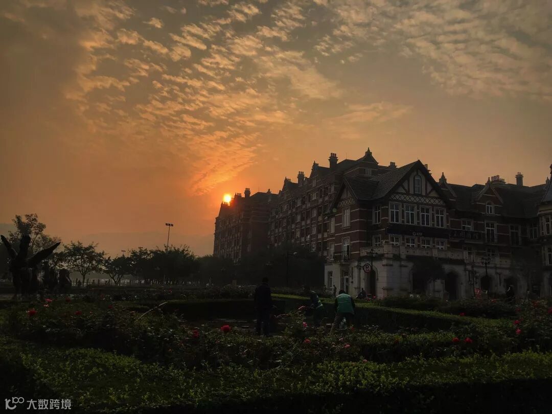 校园在晚霞的映衬下甚为美丽