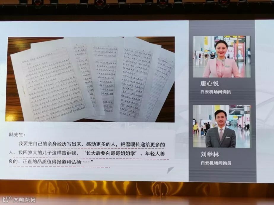 值得一提的是,他们曾帮助过的一名北京的旅客直接寄了五页纸感谢信,感谢他们的辛勤付出,并表示是他们的真情服务,改变了他对机场的看法……目前,唐心悦同学也苦练英语和基本功,成为广州白云国际机场“五星级员工”。