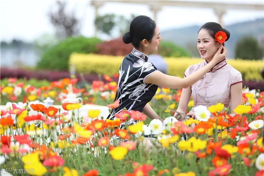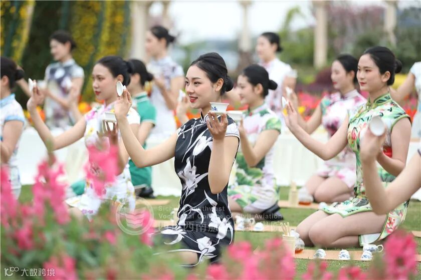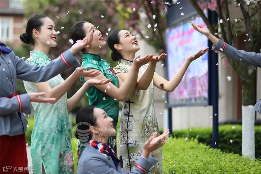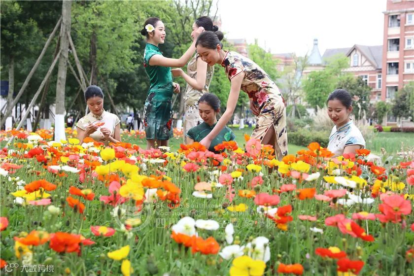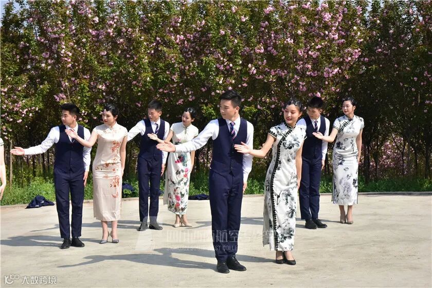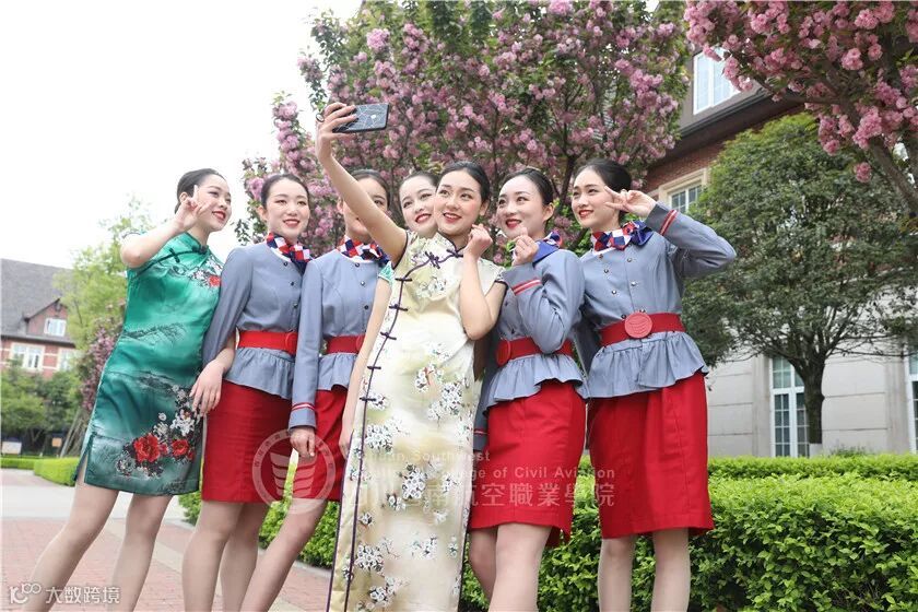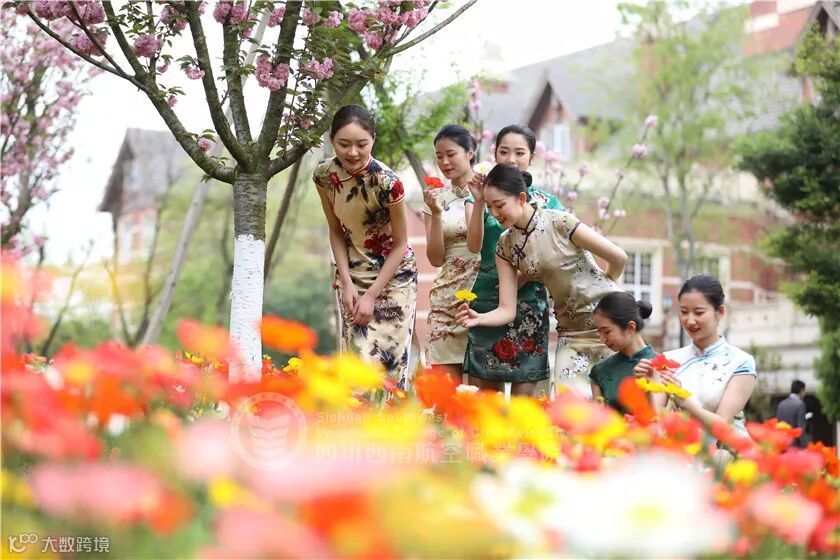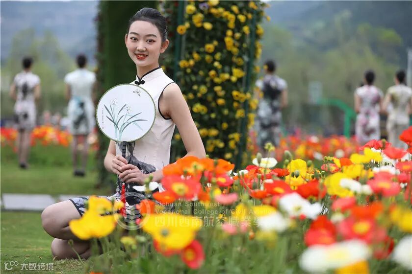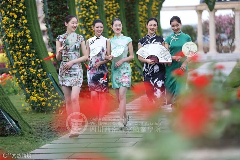 趁此美好时光,四川西南航空职业学院的“准空乘”们,着一身旗袍,执一柄团扇,绾一头发髻,和三五好友相约西航校园的春天,来一场“花式赏花”。。