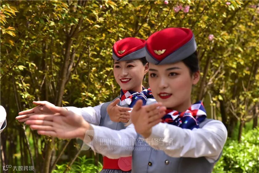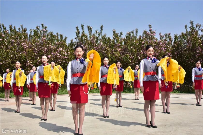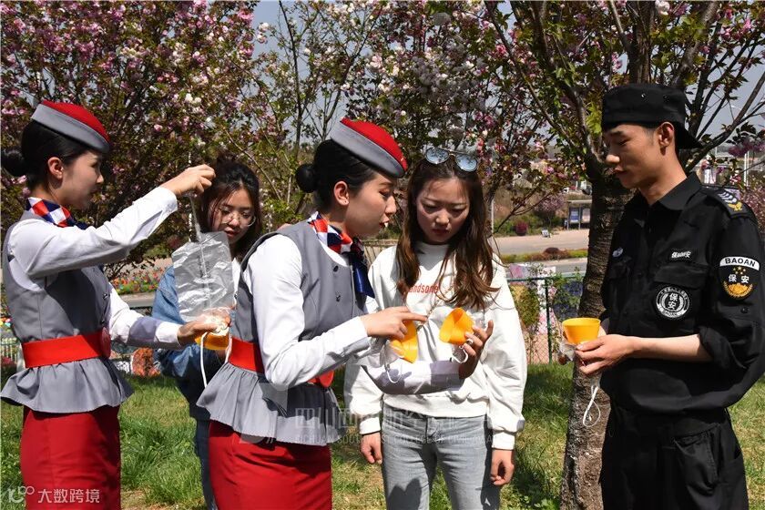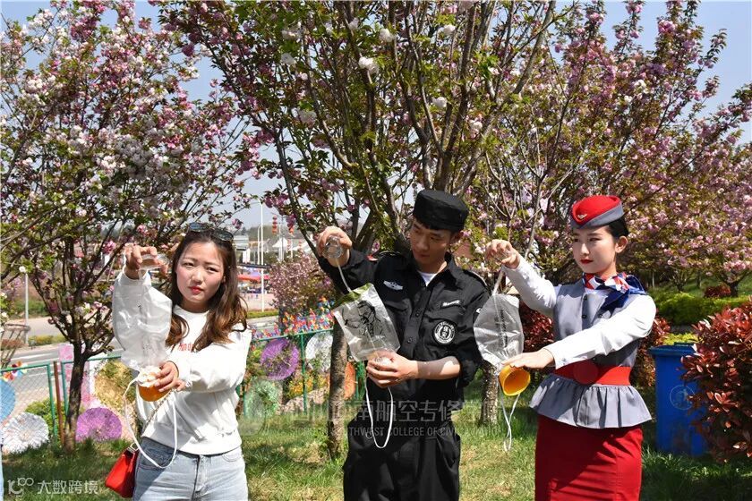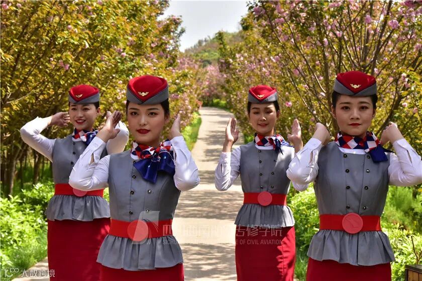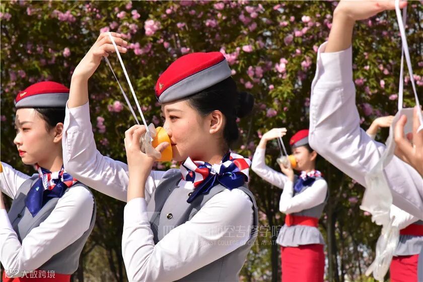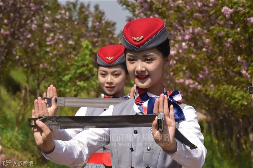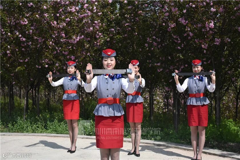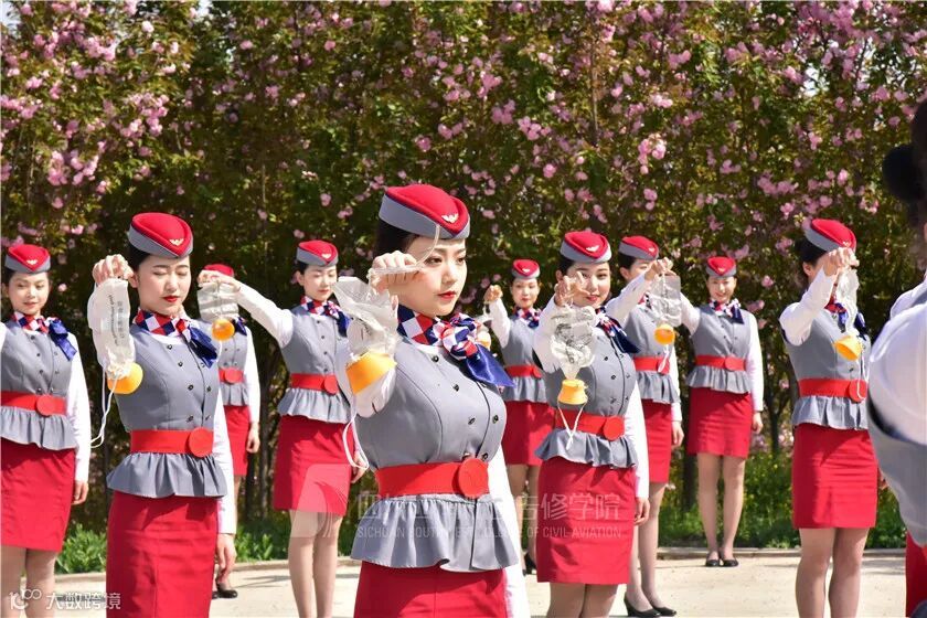 身穿“云端诱惑”版空乘制服的西航学子们,以蓝天为背景,用樱花做映衬,将课堂搬到了美丽的大自然。在和煦阳光的照耀下,自信、娴熟地进行着救生衣、应急出口、安全面罩以及安全带等演示……