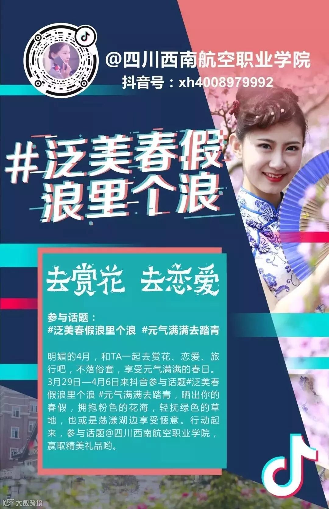 泛美春假 去赏花 · 去恋爱 让我们一起大自然的生机勃勃, 去感受生命的蓬勃向上。 3月26日—4月6日, 来抖音@四川西南航空职业学院, 西航君和大家不见不散哦~