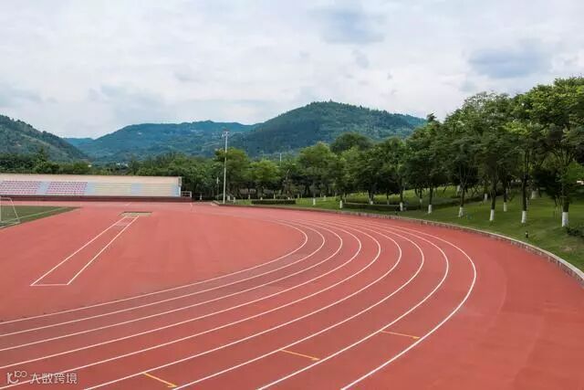 远眺青山,绿树环绕,晨光黄昏时分在腥红色跑道上健身该是多么惬意享受,不把自己培养成运动健将并非环境不造就,只怨自身不努力。