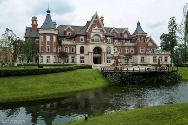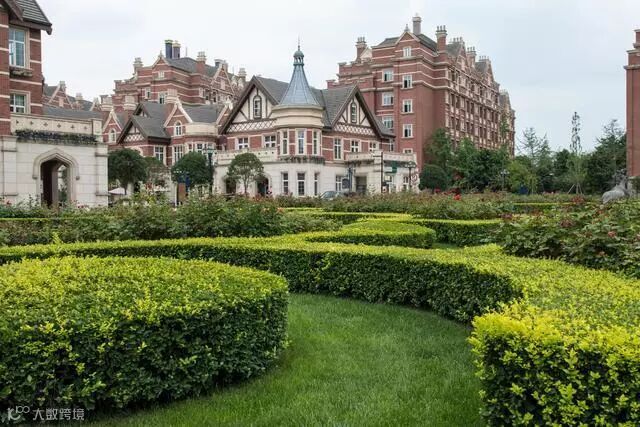 放眼望去,一片红色低矮英伦建筑群。翠绿色草坪如同地毯铺设在道路与房屋之间,仿如走进了童话世界。