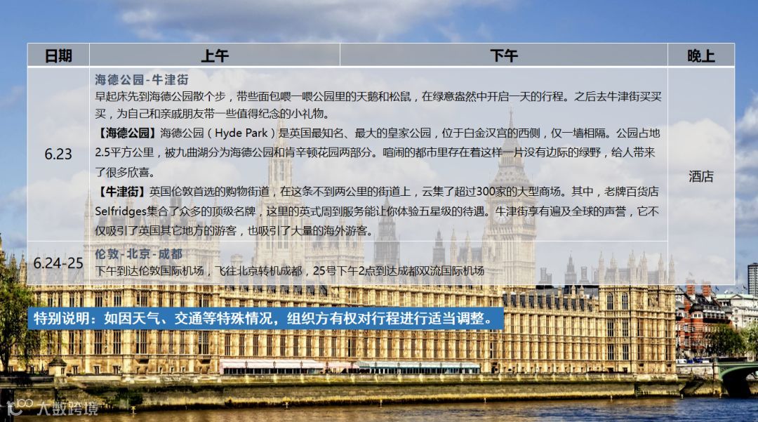 研究世界,学达古今。此次研学之旅拥有科学有效的旅行流程和安全保障方案,并做好可能突发事故的应急预案。在研学过程中,全程按照计划进行,让整个研学更加有意义,让每一个研学同学获得最好的体验……