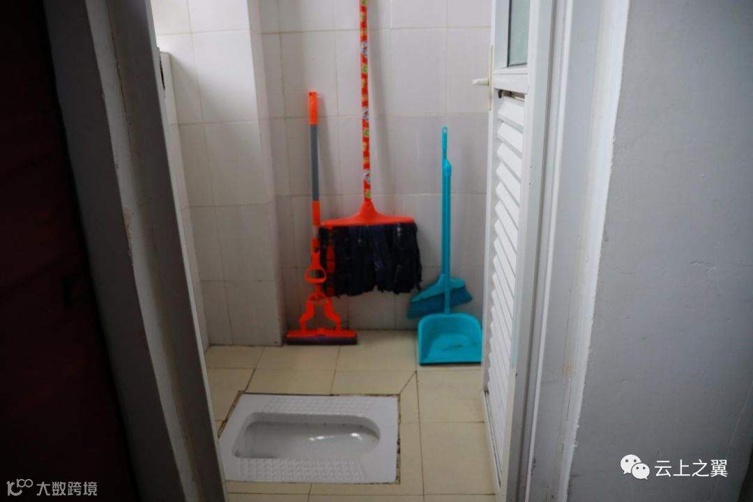 清洁工具统一整齐摆放到靠外面的厕所里面