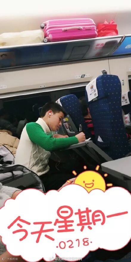 @刘颖喜欢留影啊:碰到在高铁上写作业的小学生[二哈] 可能是在狂补寒假作业哈哈哈