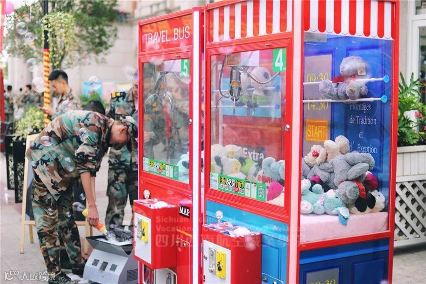 为了让更多的顾客光临自己的“摊位”前,学子们可谓是使出了浑身解数。高音喇叭扩音、Cosplay、才艺展示……此外,还有各类技术性“外援”和趣味游戏,娃娃机、,“叫卖声”此起彼伏,谈笑声欢笑声久久回荡在校园上空。