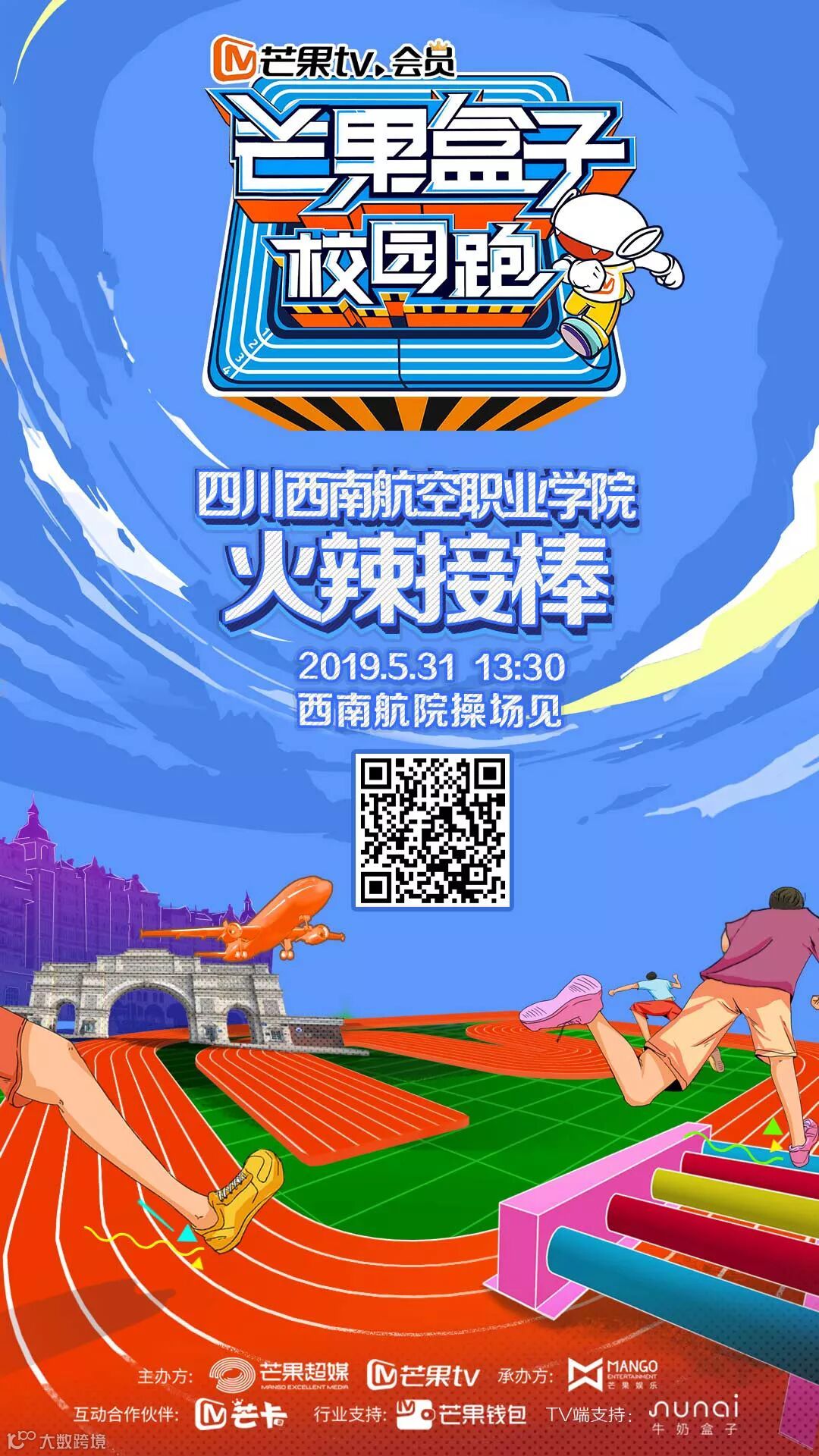 《芒果盒子校园跑》是由芒果超媒、芒果TV主办,芒果娱乐承制,集合线上区域人气最高的学校进行比赛。本次活动为三人成团趣味开跑,旨在跑出超好玩的校园青春400米。并由八大外校人气挑擂战队踢馆争夺区域最强战队荣誉,赢者将获得总决赛晋级资格及芒果tv会员青春体验官称号!