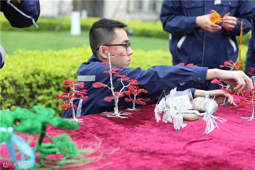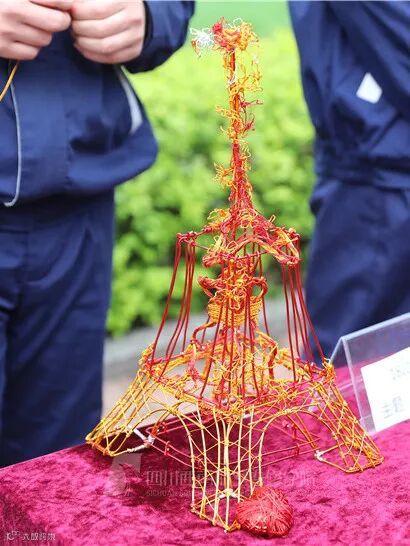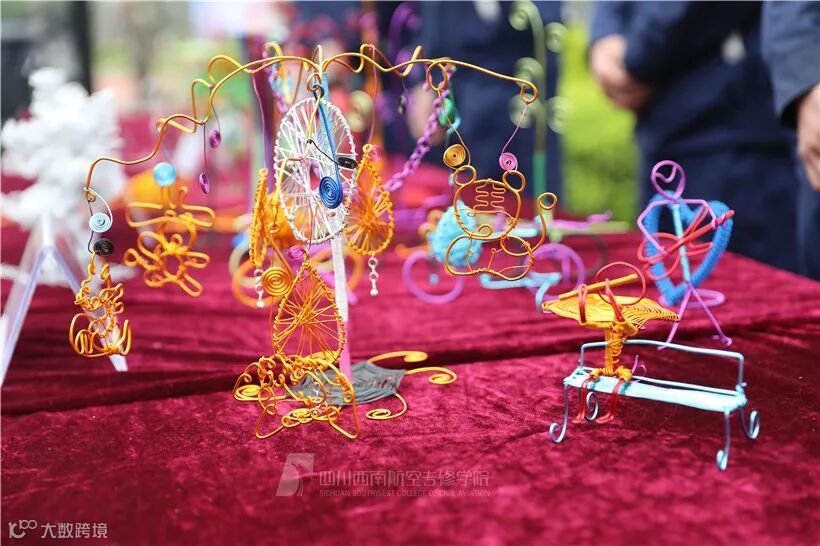 据悉,这些手工艺半成品均出自参赛学生自己的创意,有将西方铁塔和中国建筑相结合的创意铁塔,有将钣金一点点磨成各式耳坠的小饰品,也有用各色铝线编制而成的玫瑰……每一个钣金铆接工艺品都是机务学子耐心、细心和智慧的“结晶”。