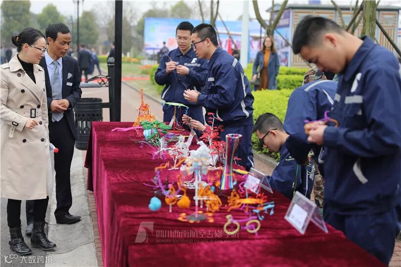 在手工艺制作项目,一系列钣金铆接工艺品、铝线手工艺品、装配钳工工艺品在机务学院“手工帝”们手中熠熠生辉。17级飞机机电设备维修专业的邓茗心同学介绍手中的手工艺制品:“为了这次职业技能大赛,我们提前一周就开始准备半成品,花费了十几个小时。但是我们相信,一切的辛苦都值得!”