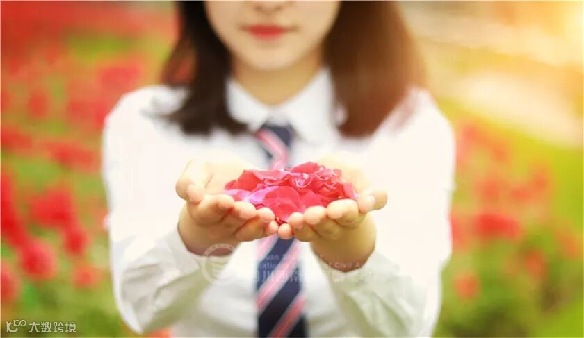 放学后,挽着同窗好友走回宿舍的路上,仿佛自己正走在一条“花瓣路”上。随风起舞的绿叶,五彩缤纷的花朵,一起摇曳着娇媚的身姿。在这样宛如童话里王子和公主相遇的场景里,只需要一本书,一片花瓣,便可以将最美的自己展现出来。