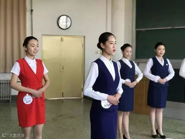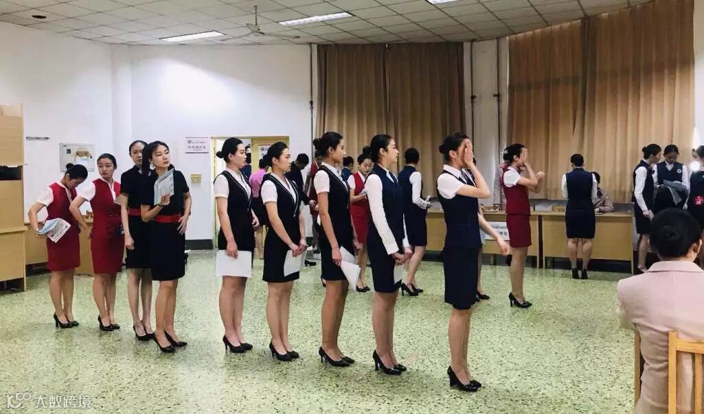 考试现场,一批批经过严格培训的应届考生身着整齐的专业制服,略带淡雅妆容,携带自己的有效证件于考点有序排队等候。