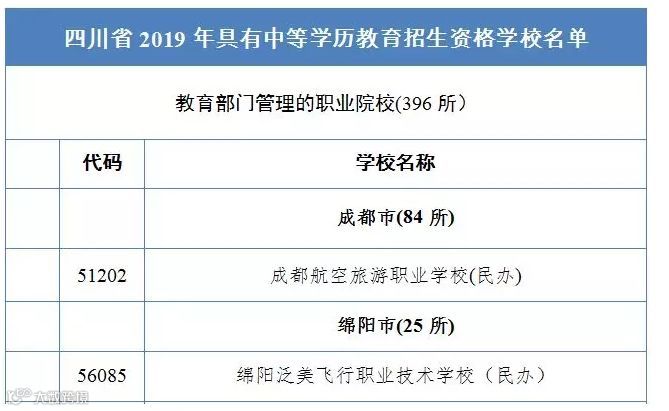 近日,四川省教育厅公布了2019年具有中等职业学历教育招生资格的学校和专业。