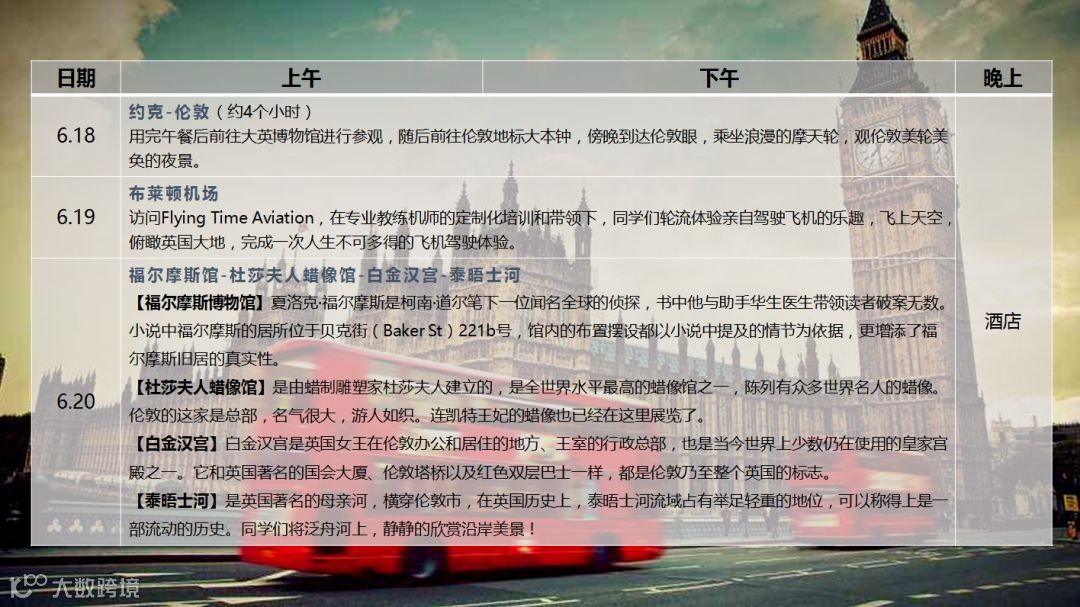 // 线路一:英国航空飞行与世界名校探索营
